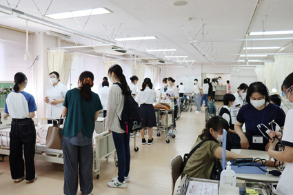 オープニングプログラムから始まり、在校生との模擬授業、学生の本音が聞ける学生ブース、レオポルド触診法、バイタルサイン測定などの技術体験。